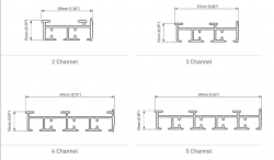 Track Depth: 3 channel 51mm. 4 channel 69mm. 5 channel 87mm.