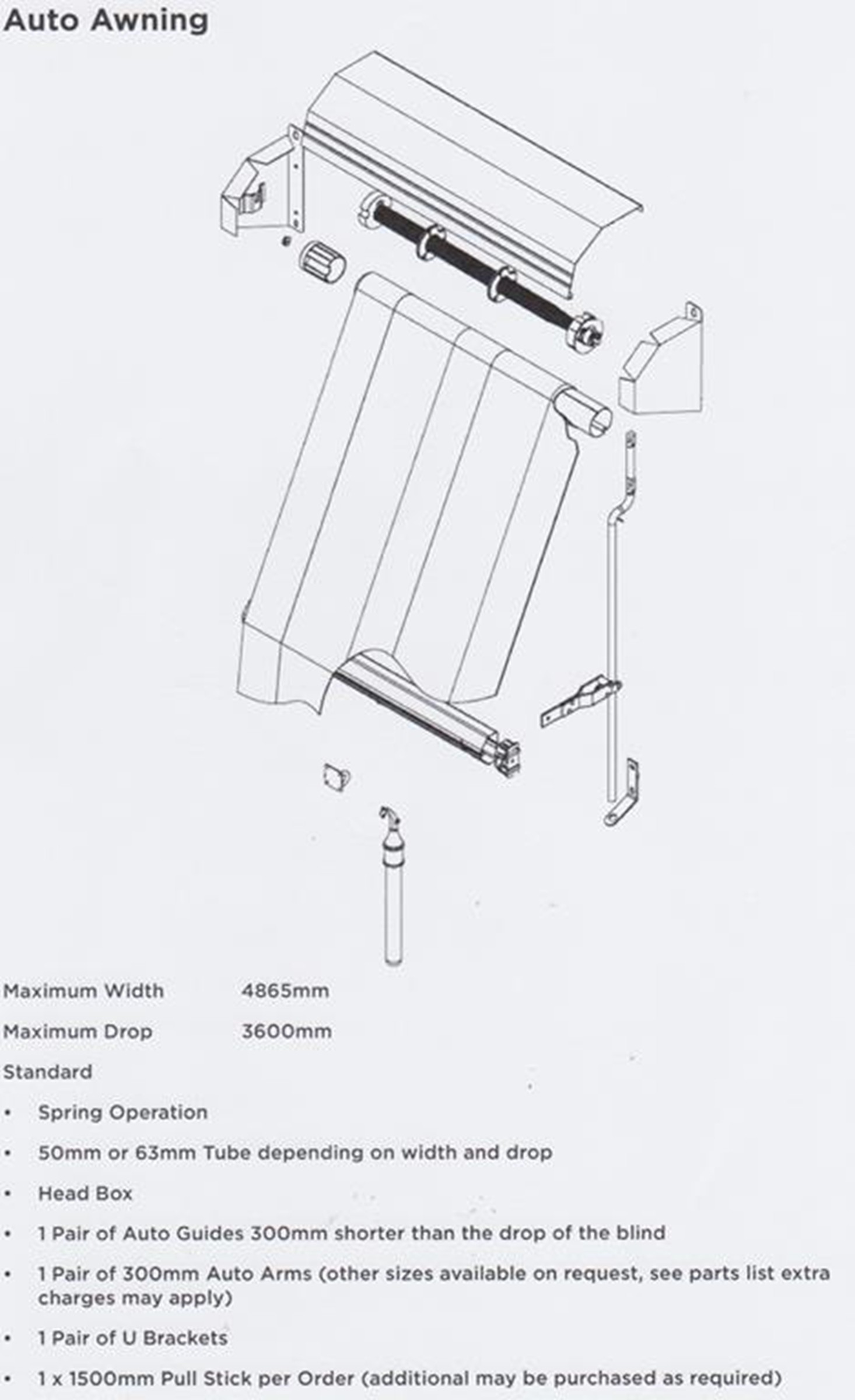 Applications: Auto Awning, Wire Guild Outdoor Roller Blind and Side Channel Awning