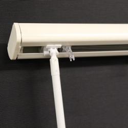 No fabric insert is available on the Absolute track but you can select the track colour of your choice. Slimline Curved profile track in 6 colour options with coordinated brackets. On Wand operated the Stack selection pre-determines Wand Control Side. Sewn in weights an option for 5% more.
