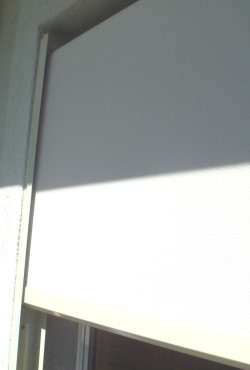 Exterior Side Channel Awnings with simple spring loaded operation. Pull them down by the Baserail and twist it to lock them off in a number of fixed positions. Twist again to release and the spring will carry it back up the side channels to the open position.